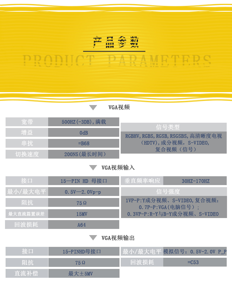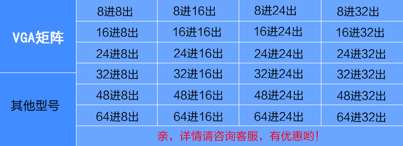 提供VGA04*04(4進(jìn)4出)至VGA128*128(128進(jìn)128出)各個(gè)型號(hào)。